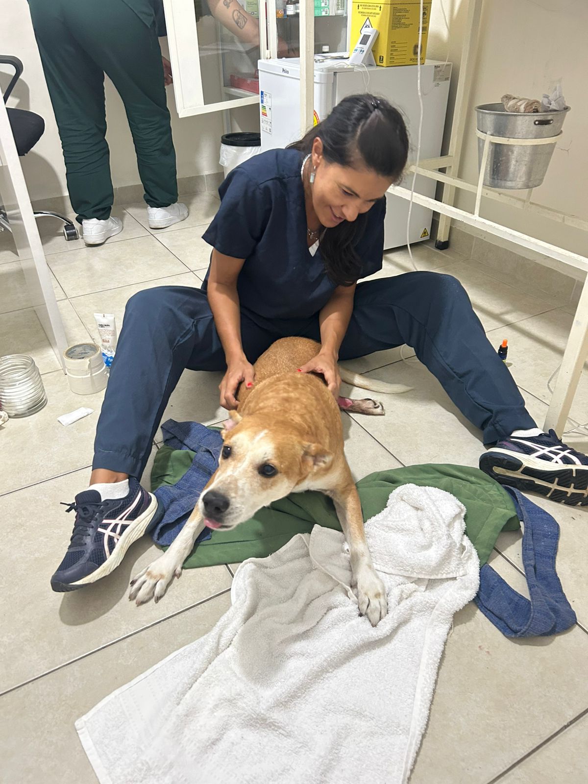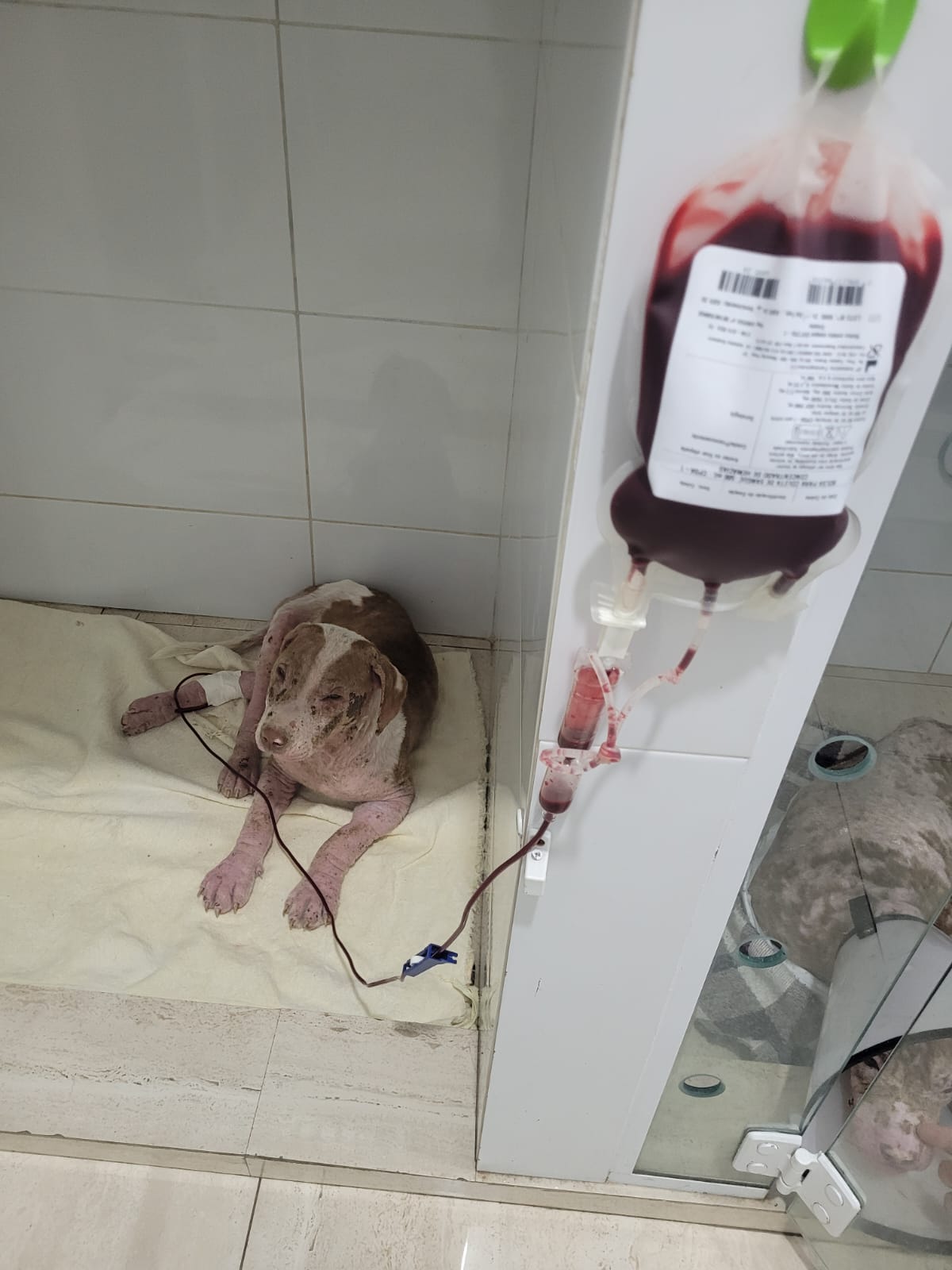 Sula, resgatada em 2024 com severa condição de pele e totalmente debilitada. Precisou de transfusão.